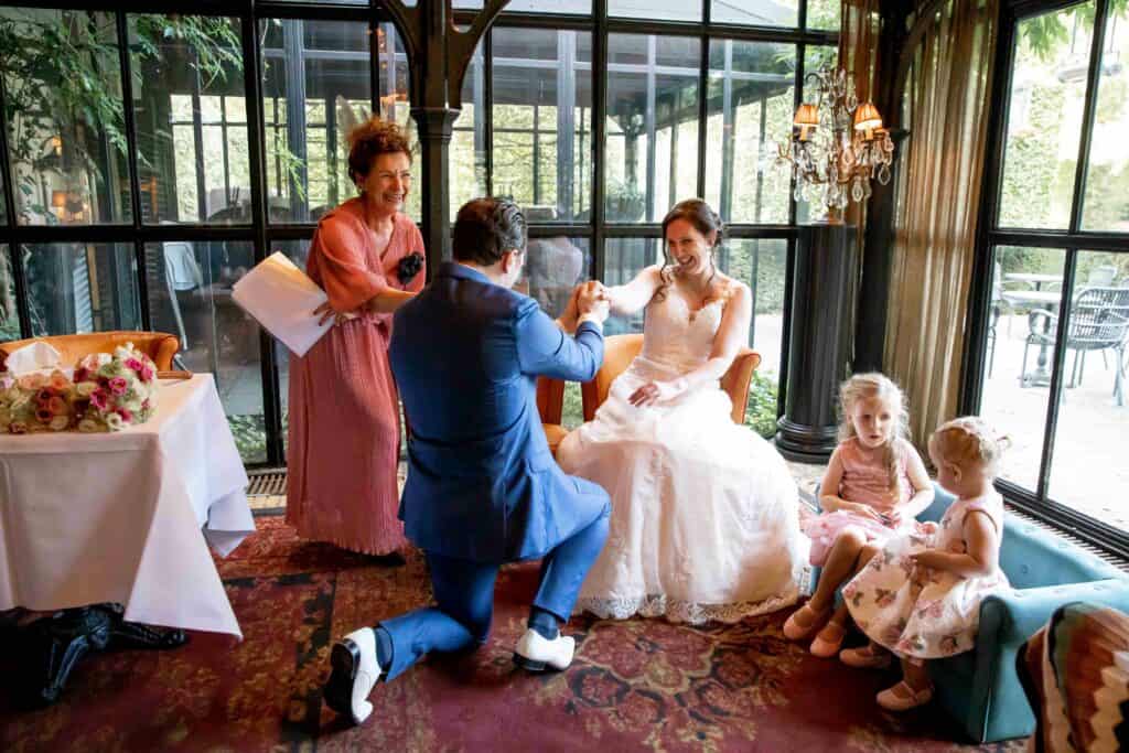 Wij vonden het erg belangrijk dat onze kinderen bij de ceremonie betrokken zouden worden…. onze ambtenaar van de burgerlijke stand Yvon, had dit niet beter kunnen doen!