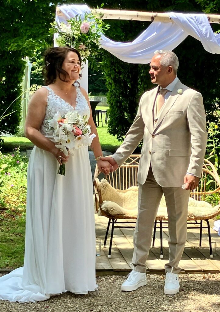 Wat we vooral waardeerden, is dat Yvon ons verhaal echt tot leven bracht. Het was geen standaardpraatje, maar een uniek, liefdevol en zorgvuldig samengesteld verhaal. Onze familie en vrienden hebben meerdere keren gezegd hoe mooi en persoonlijk de ceremonie was!