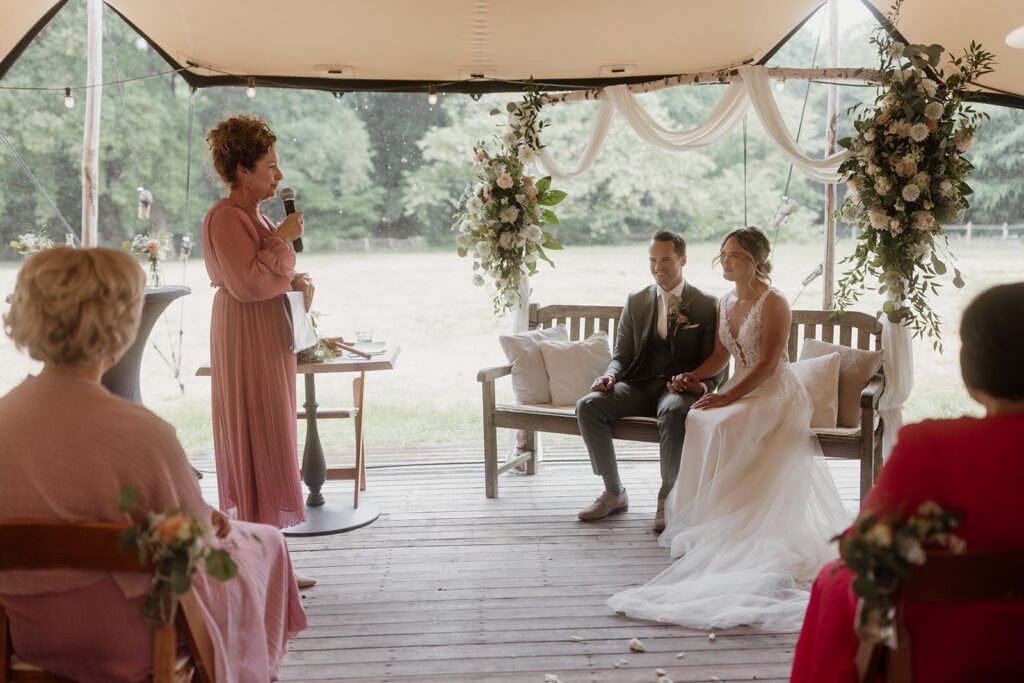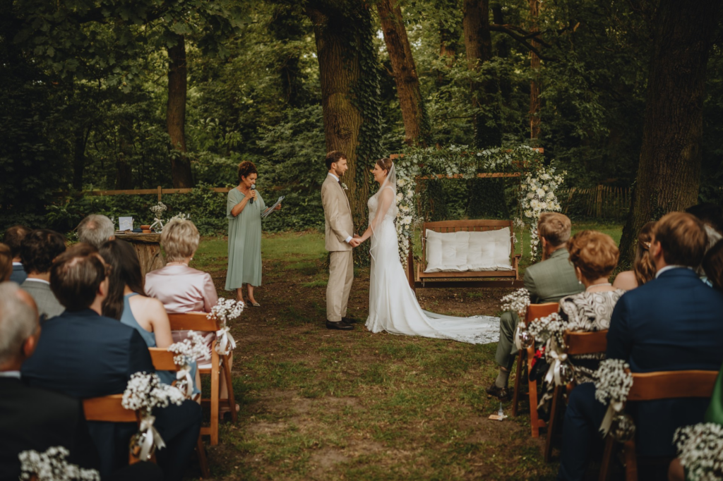 Ze neemt iedereen mee in het verhaal van het bruidspaar en zorgt voor een sfeer waarin iedereen zich verbonden voelt. Het was alsof ze ons al jaren kende. We zijn ontzettend dankbaar dat zij onze ceremonie heeft geleid — het was magisch en niet te omschrijven hoe mooi het was!